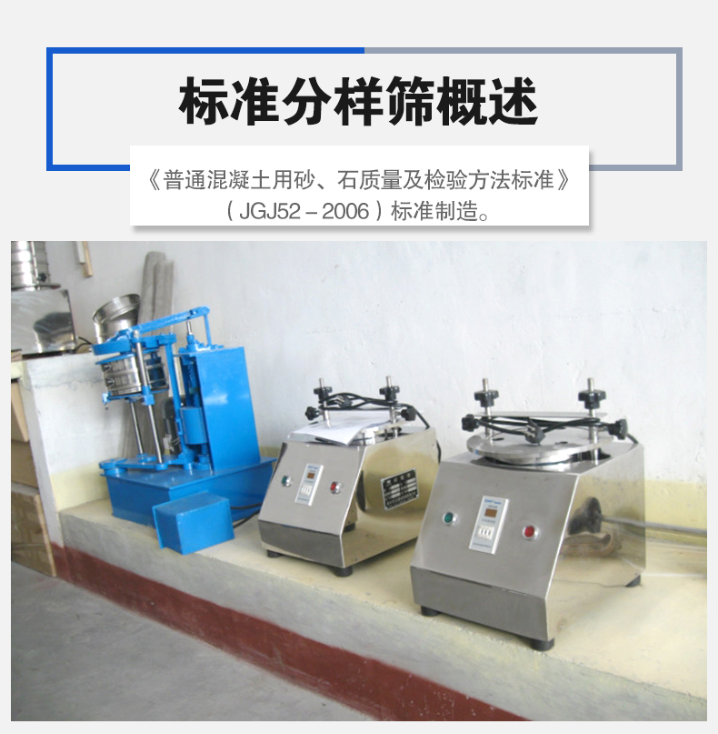 供應標準分樣篩供應分樣篩是按《普通混凝土用砂、石質(zhì)量及檢驗方法標準》(JGJ52-2006),對顆粒性材料進行篩分試驗用的符合標準形狀和尺寸規(guī)格要求的系列樣品篩。標準篩篩孔為正方形或圓形,適用于測定碎石或卵石中的含泥量。